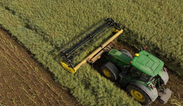 Flexible Schwadablage: Aus der Kabine steuerbar legen Sie das Schwad links, rechts oder mittig ab – ideal für verschiedene Ernteeinsätze.